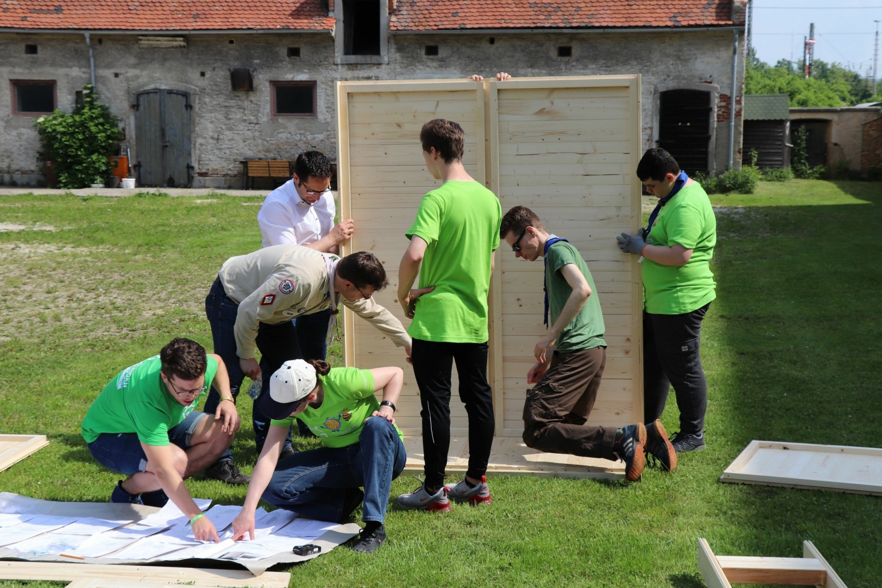 Vom 24. – 26.05.2019 starteten die Pfadfinder aus Wenzenbach ihre Aktion in einer Werkstatt vom Verein Transition Regensburg. Dort bauten wir den Verschenkschrank, der zuvor in den Gruppenstunden konzipiert wurde. Holz wurde sortiert, bearbeitet, abgemessen und gesägt, um den Schrank Stück für Stück aufzubauen. Die Jugendlichen zeigten hohes Interesse und Fertigkeiten bei dem schrittweisen Aufbau des Schrankes. Übernachtet wurde nach Pfadfindermanier in einem großen Schwarzzelt – der Jurte. Selbstverständlich ließen wir die Abende mit einer Lagerfeuerrunde und mit gemeinsamen kochen ausklingen. Dort hießen wir viele Gäste und Besucher willkommen.