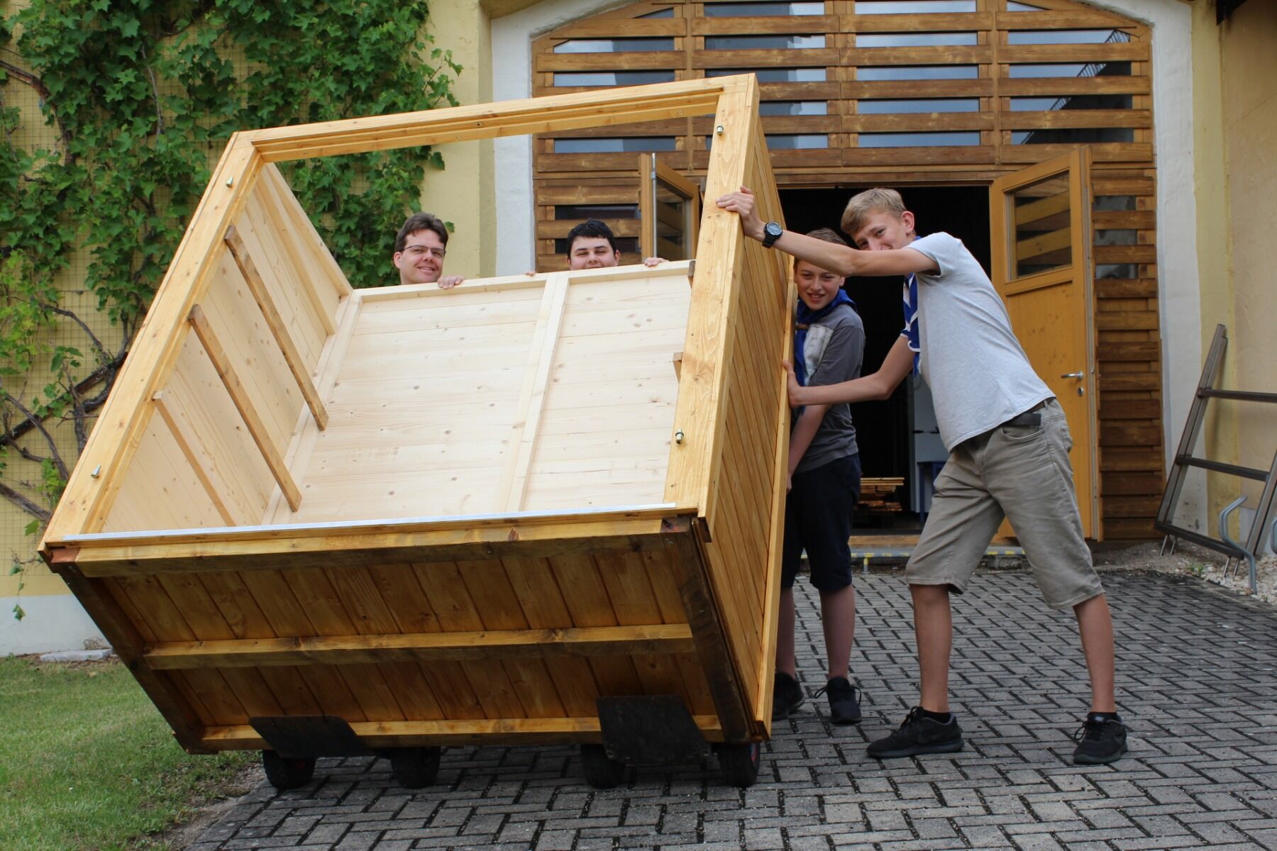 Der Aufbau war noch einmal ein großer Kraftakt. Alle Einzelteile mussten wir zum Ort tragen und in der richtigen Reihenfolge zusammenbauen. Schritt für Schritt entstand so der komplette, funktionelle und einzigartige Wenzenbacher Verschenkschrank. Bereits beim Aufbau wurden die Pfadfinder von einigen Interessierten angesprochen und es wurden sogar Patenschaften angeboten.