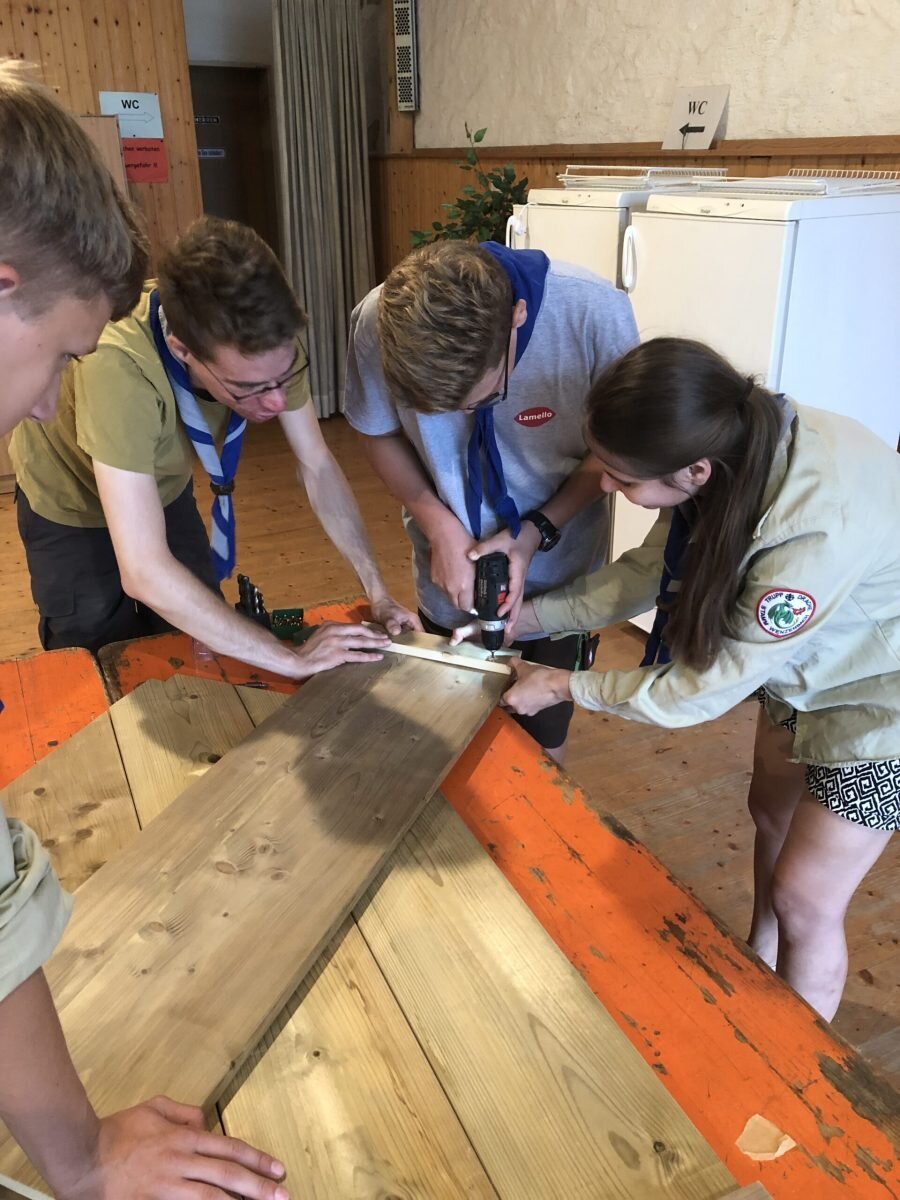 Geleitet von diesem Gedanken bauten wir seit letztem Jahr in den Gruppenstunden an zwei großen Insektenhotels. Seit einige Wochen stehen sie an der Streuobstwiese des OGV beim Kapellenweg und am neuen Spielplatz in den Wenzenbacher Auen. Dieses Projekt war uns seit Langem ein Anliegen, dessen Umsetzung wir in den vergangenen Monaten konsequent verfolgt haben. Die Arbeit der Pfadfinder richtet sich in der Regel nach der Projektmethode. Und so haben wir in den Gruppenstunden Stück für Stück an der Verwirklichung der Idee gearbeitet. Von der Planung über die Organisation der Materialien, bis hin zur thematischen Aufbereitung des Inhalts und Insektenkunde durch den OGV.