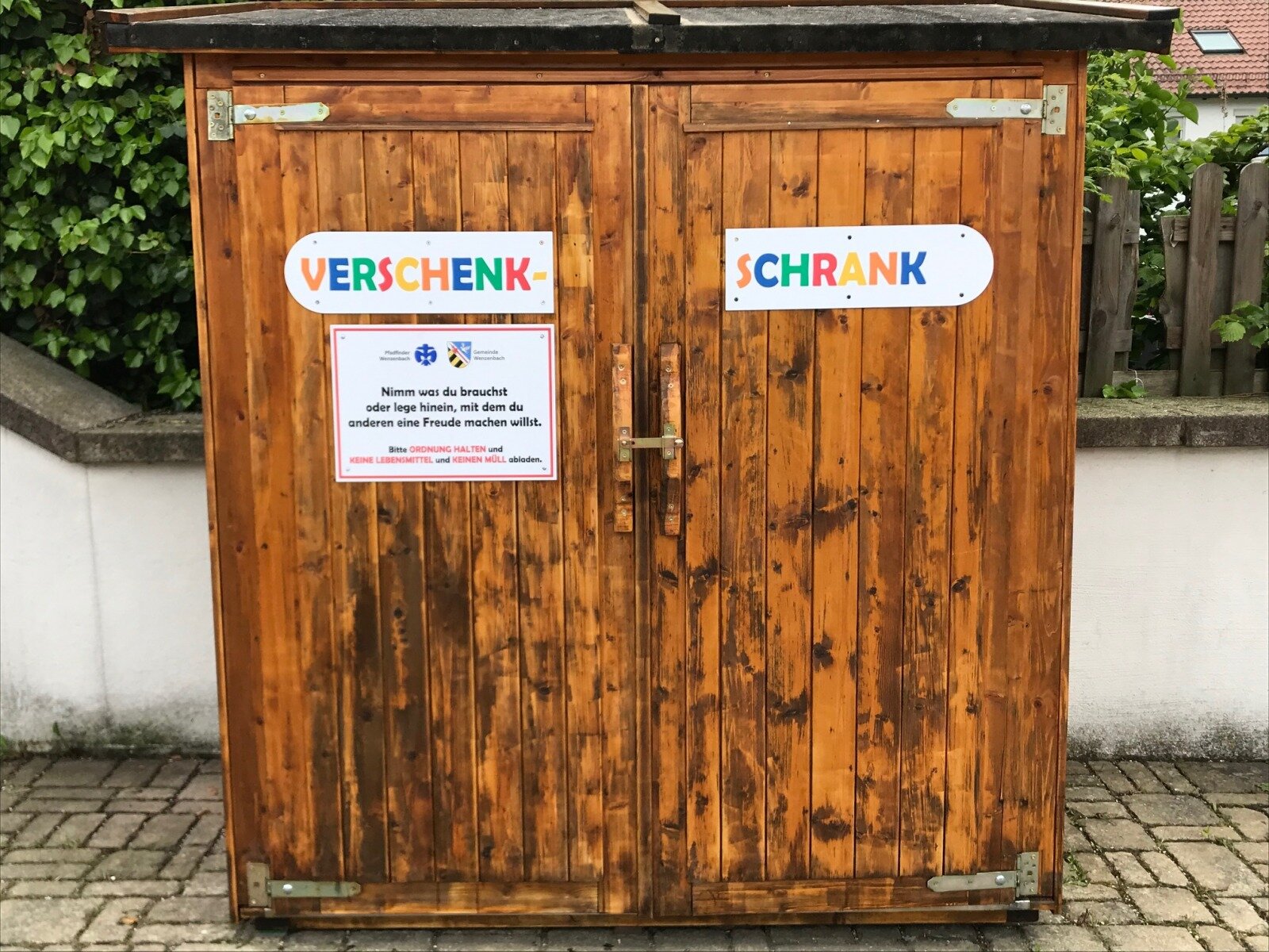 Bei dem „Verschenkschrank“ handelt es sich um einen öffentlichen zugänglichen Schrank, der neue oder gut gebrauchte Gegenstände zur kostenlosen Mitnahme bereitstellt.